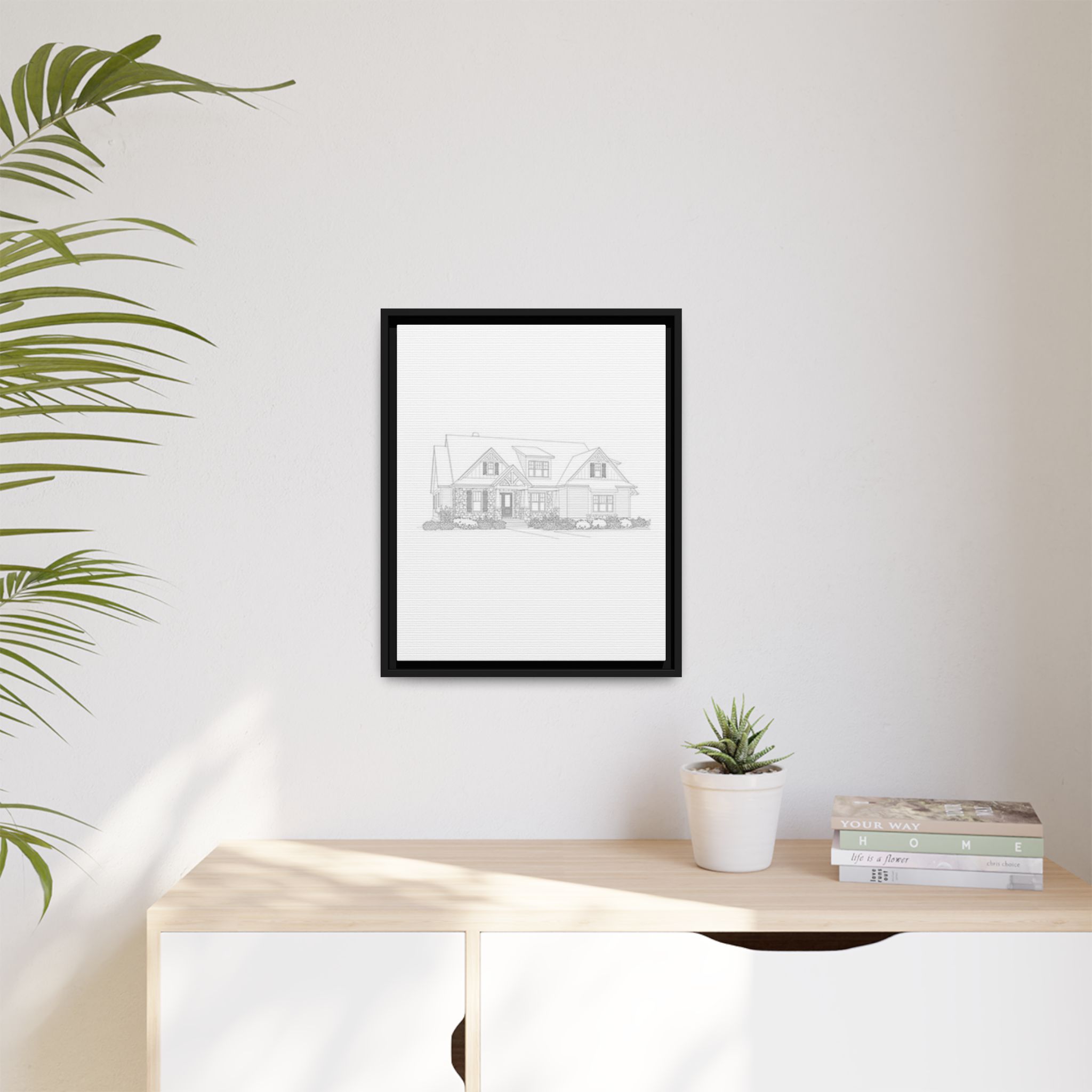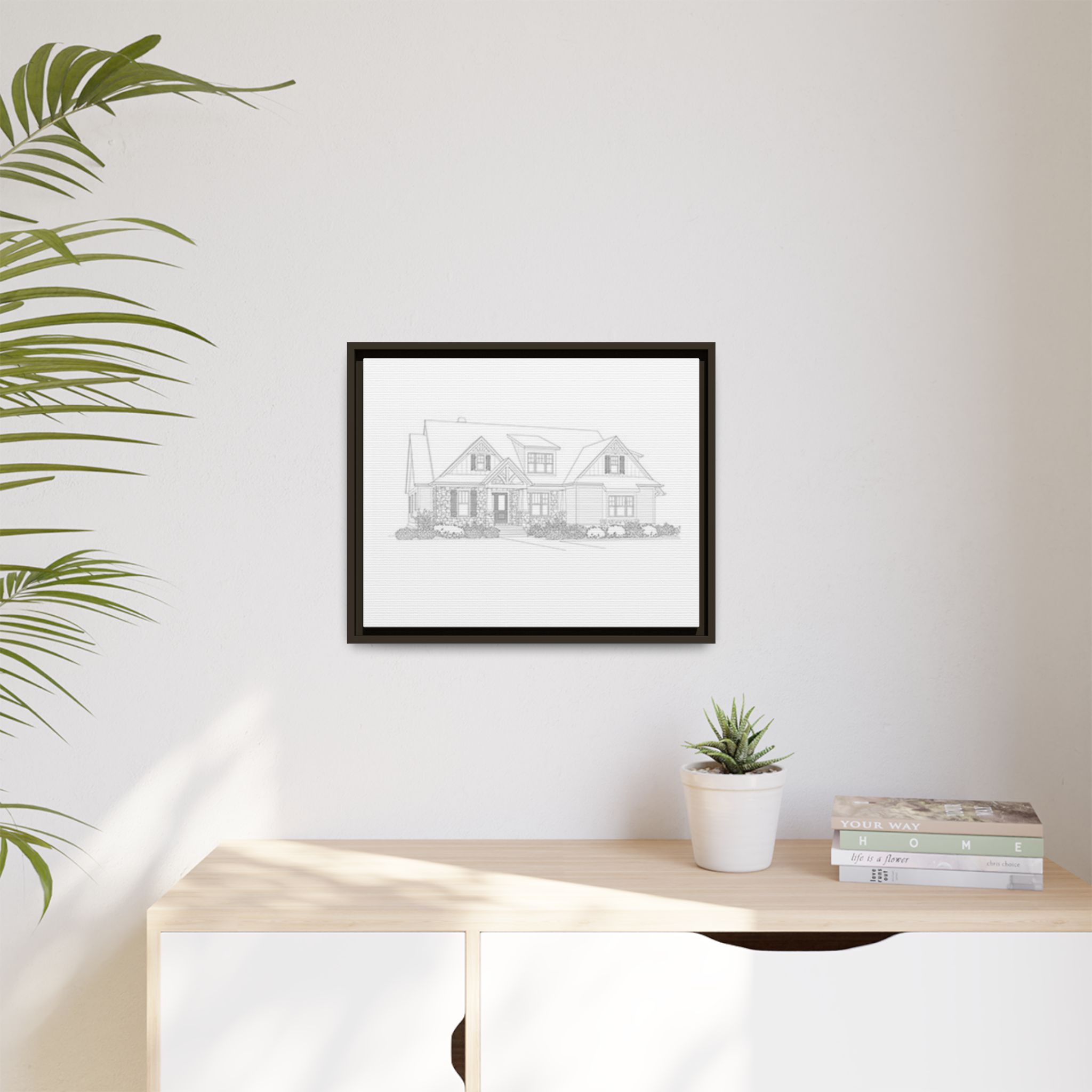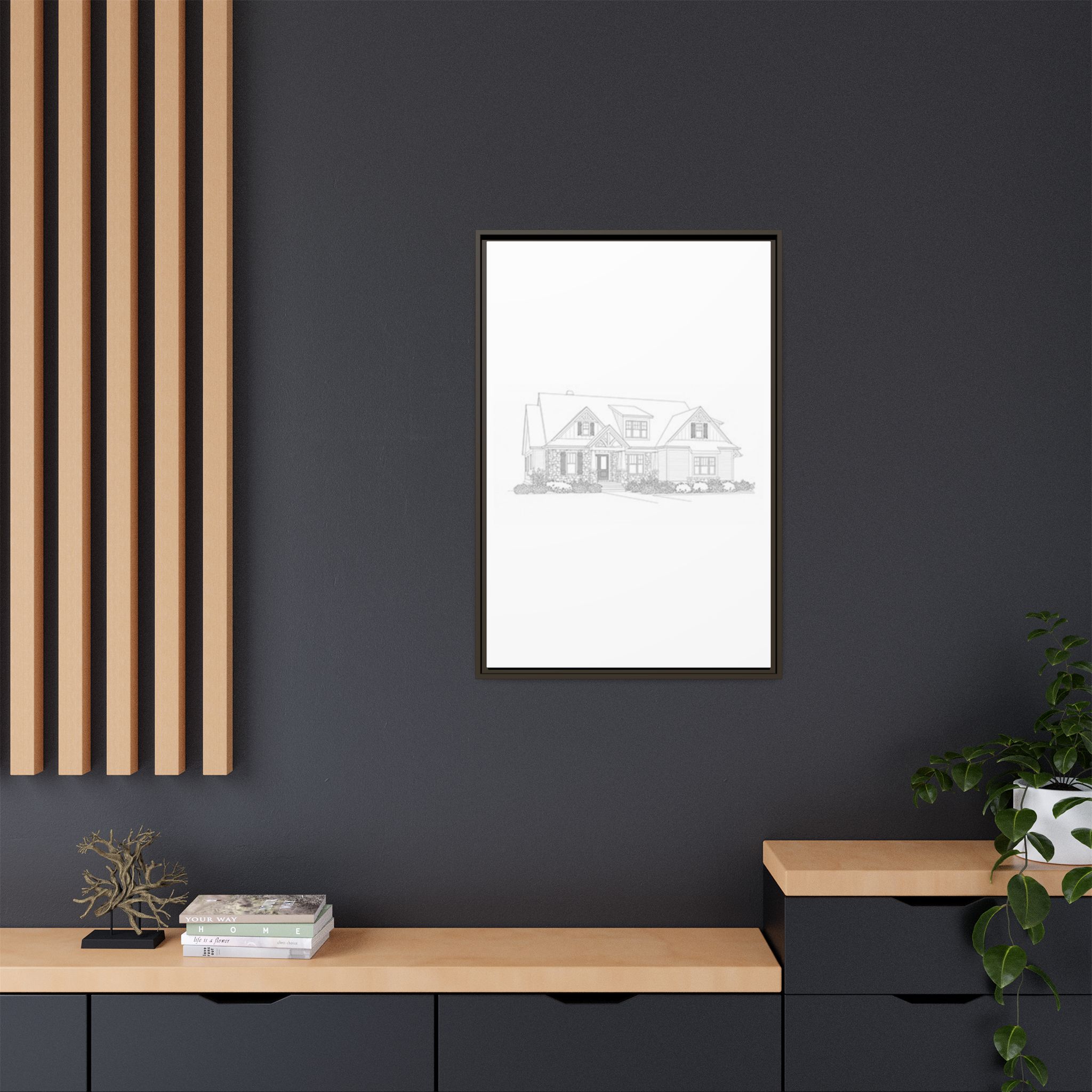 A refined matte canvas print, stretched and framed for a clean, architectural look that brings plans and sketches to life on your wall. The subtle matte finish removes glare and keeps focus on fine lines and details—ideal for blueprints, home portraits, or minimalist art. The slim pine frame adds warmth and structure while keeping the overall feel modern and gallery-ready. Lightweight yet sturdy, it arrives ready to hang with sawtooth hardware so your space feels settled the moment it’s mounted.
