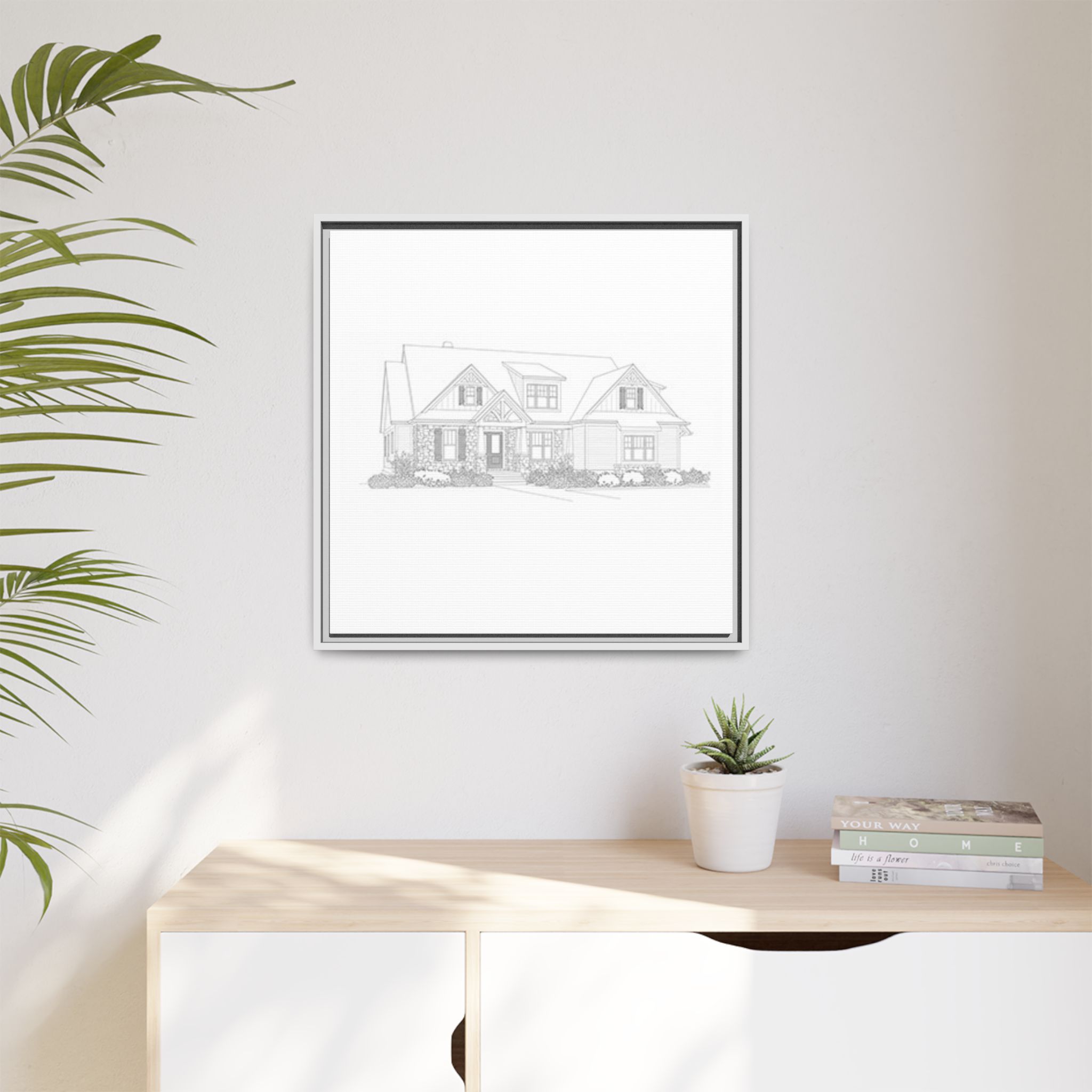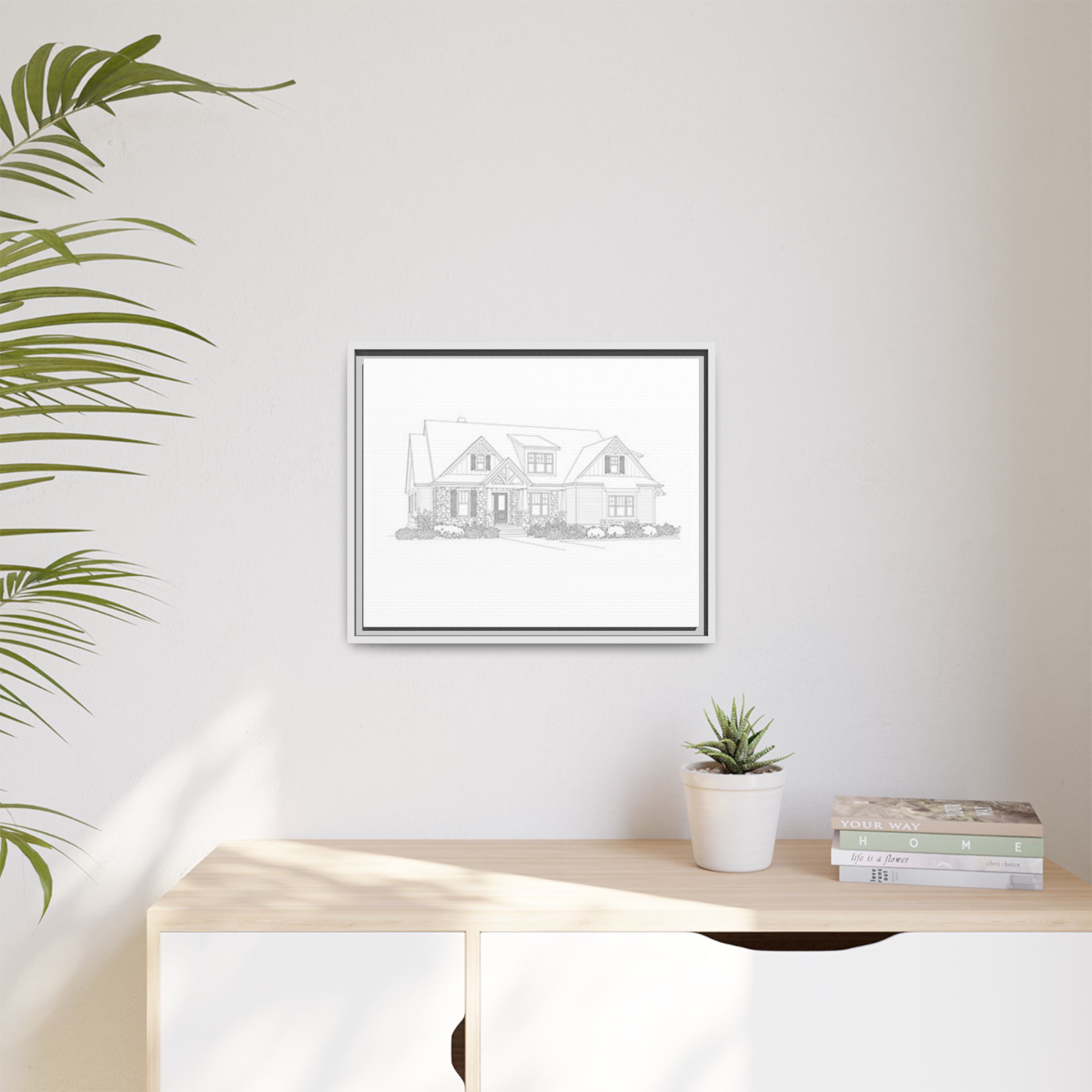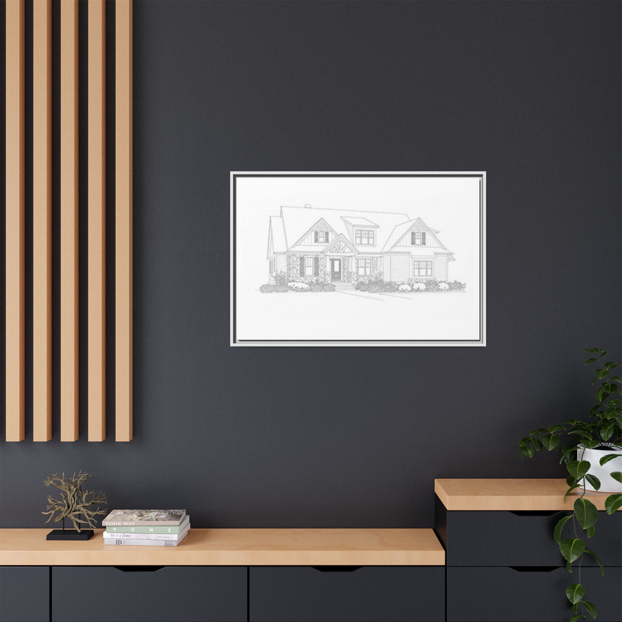 A refined matte canvas print, stretched and framed for a clean, architectural look that brings plans and sketches to life on your wall. The subtle matte finish removes glare and keeps focus on fine lines and details—ideal for blueprints, home portraits, or minimalist art. The slim pine frame adds warmth and structure while keeping the overall feel modern and gallery-ready. Lightweight yet sturdy, it arrives ready to hang with sawtooth hardware so your space feels settled the moment it’s mounted.