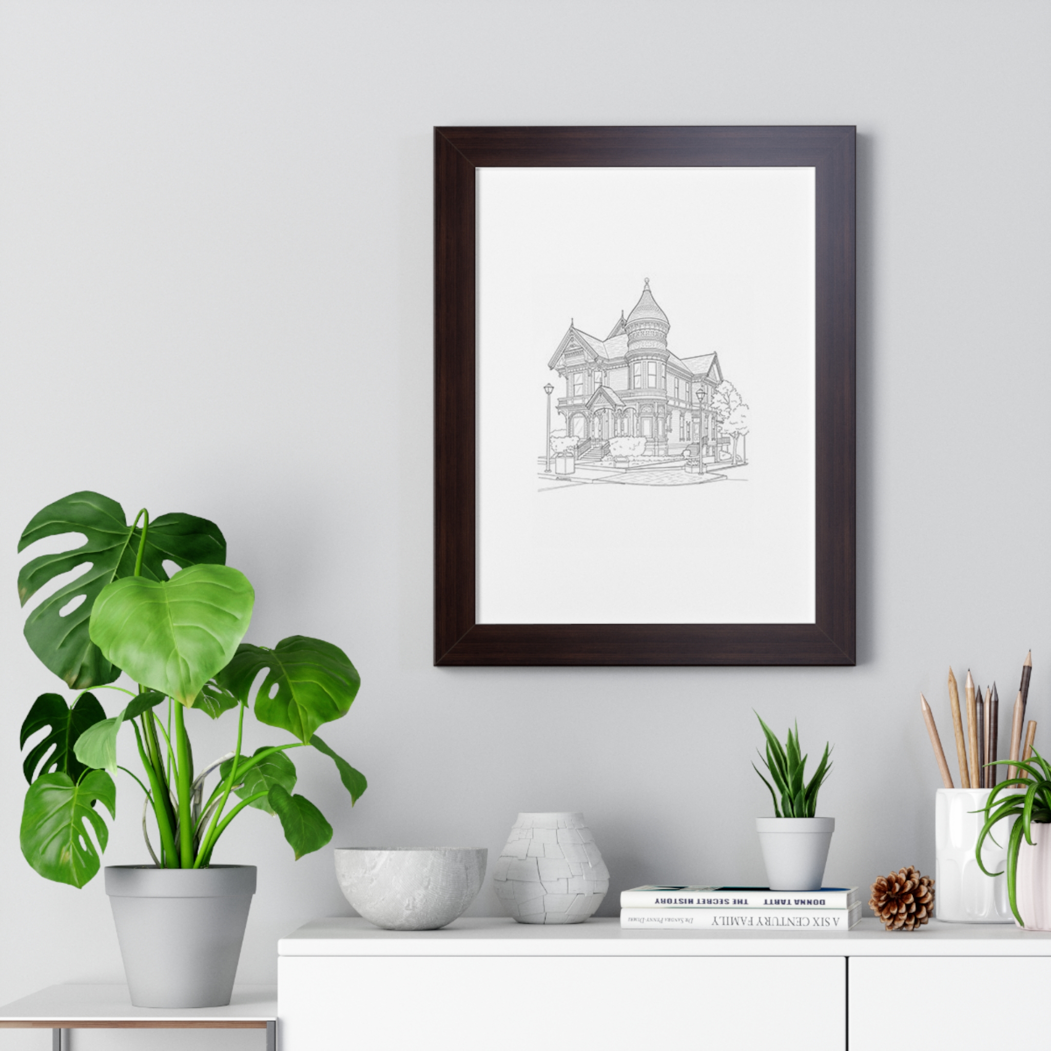 A finely framed vertical poster that brings architectural charm into any room. Printed on museum-quality matte paper, the detailed line drawing sits cleanly within a slim, modern frame available in black, white, or walnut. The protective acrylic cover keeps the print crisp and free from dust, while built-in or included hanging hardware makes installation straightforward. Lightweight Ayous wood or sturdy MDF frame options let you choose the feel and finish that best suits your space. This poster adds a quiet, cultivated presence to entryways, living rooms, or home offices — a subtle nod to craftsmanship and classic streetscapes.